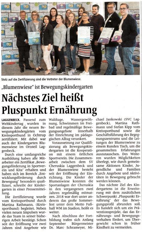 Der Kindergarten Blumenwiese freut sich auf die erste Auszeichnung. Die musikalische Frühförderung spielt in der Einrichtung eine große Rolle und wird aktiv in den Kindergartenalltag integriert. Zu der musikalischen Frühförderung gehört das kindgerechte Singen auf der Basis qualifizierter musikalischer Grundlagen und Techniken.