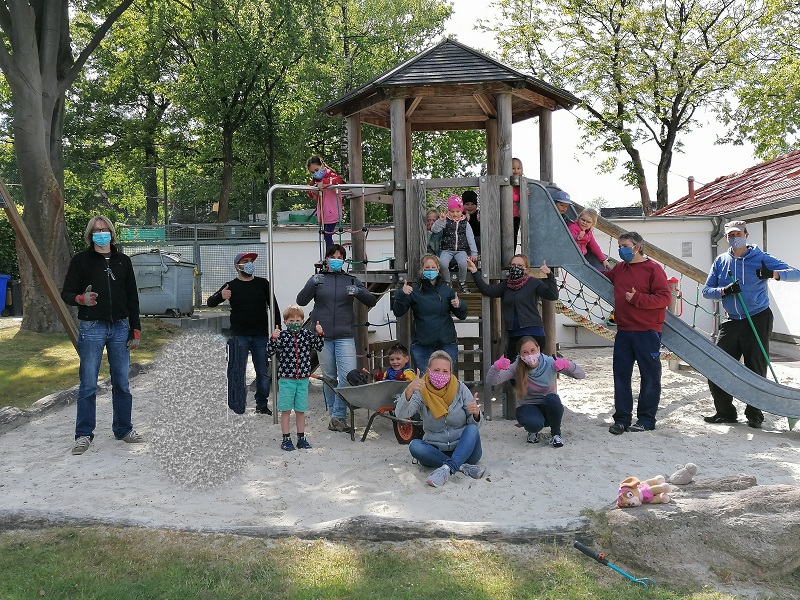 Im November 2019 haben wir zudem die Patenschaft des Spielplatzes im Freibad übernommen. Regelmäßig zur Saisonbeginn (Mai) und Saisonende (September) treffen sich engagierte Familien in Begleitung einer Fachkraft unserer Einrichtung und machen den Spielplatz startklar für die jeweilige Jahreszeit.