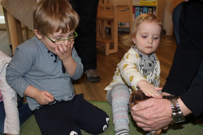 Auch in diesem Jahr hatten wir das Vergnügen zu erleben, wie aus dem Ei ein Küken schlüpft. Herr Messmann, vom Geflügelzuchtverein Ibbenbüren, stellte uns in der Zeit vom 08.03.2019 bis zum 14.03.2019 freundlicherweise einen Brutkasten mit Hühnereiern zur Verfügung. Dieses wurden zum besonderen Ereignis für Groß und Klein in unserer Einrichtung.