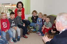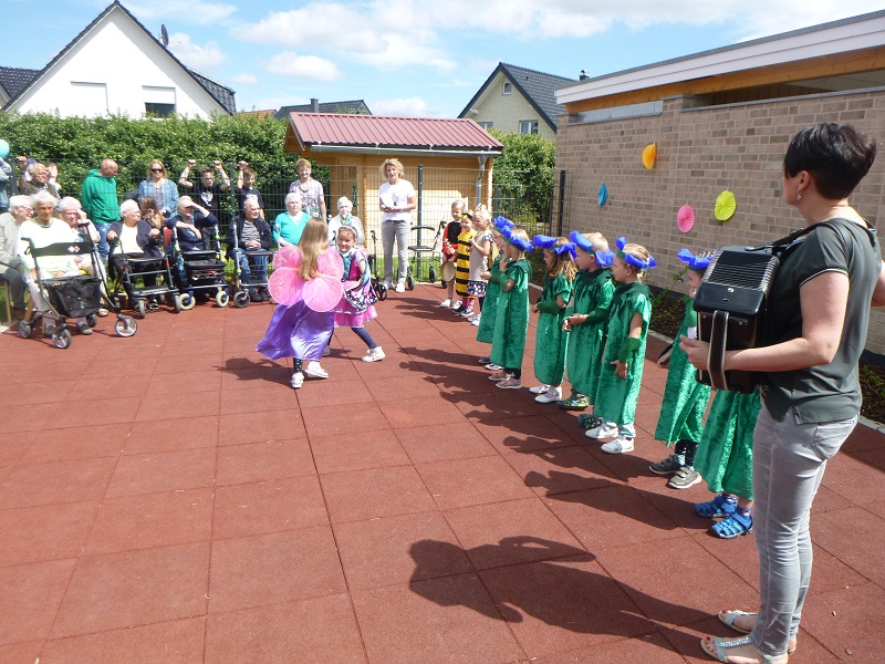 Am Nachmittag haben die Kinder der Blumenwiese anlässlich des 60. Hochtzeitstages eines Bewohnerehepaars die Einrichtung „ALTERnatives Wohnen“ besucht. Im Rahmen des Besuches hatten die Kinder ein Lied sowie ein Kreisspiel eingeübt. Die Bewohner waren von dem Besuch sichtlich gerührt. Anschließend gab es auch noch für die „Kleinen“ eine Überraschung in Form von Süßigkeiten.