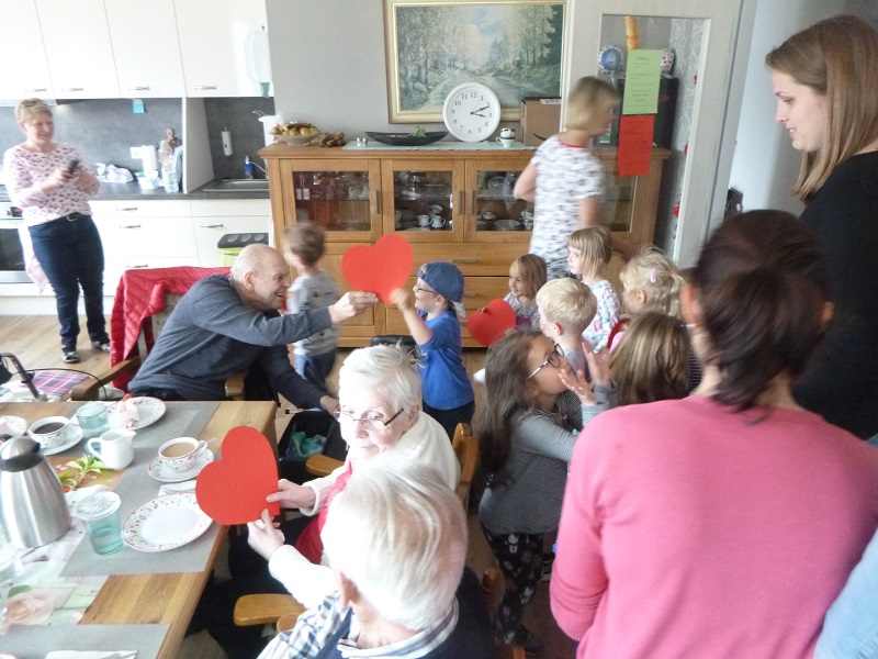 Den Vormittag haben beide Seiten sehr genossen. Sie haben Kuchen gegessen, Lieder gesungen und gemeinsam Blumen eingepflanzt.