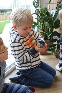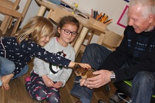 In der Zeit vor Ostern haben die Kinder viel zum Thema Frühling erlebt. Neben dem Schlüpfen von Küken im Brutkasten, gab es auch Kaninchen zu Besuch.
