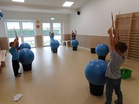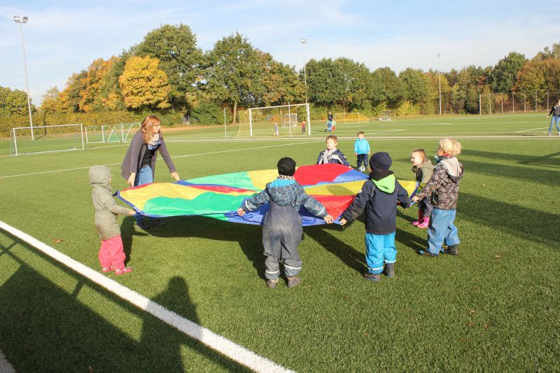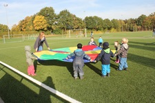Wir versuchen den Kindern möglichst viele Gelegenheiten zu bieten, um ihrem Bewegungsbedürfnis nachzukommen und so ihr ganzheitliches Lernen zu ermöglichen, denn „Bewegung ist das Tor zum Lernen“.